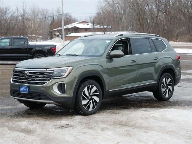 2026 Volkswagen Atlas 2.0T SEL AWD, ALL WHEEL DRIVE, APPLE CAR PLAY, ANDRIOD AUTO, REARVIEW CAMERA SYSTEM, BLUETOOTH, INTELLIGENT CRASH RESPONSE SYSTEM, NAVIGATION GPS, BLIND SPOT TECHNOLOGY, HEATED SEATS, HEATED AND COOLED SEATS, HEATED STEEERING WHEEL, PREMIUM WHEELS, TOW PACKAGE, 7 PASSENGER, MOONROOF, SUNROOF, PANORAMIC MOON ROOF, 3RD ROW SEATING, PUSH BUTTON START, SERVICE RECORDS AVAILABLE, FORWARD COLLISION WARNING, USB PORTS, SIDE MIRROR TURN SIGNALS, VOICE ACTIVATED CONTROLS, backup camera, Remote Start, Tow Package, Sunroof/Moonroof, Premium Audio Package, Navigation System, Power moonroof: Panoramic, VW Care. Navigation System, Power moonroof: Panoramic, VW Care, 3rd row seats: split-bench, 4-Wheel Disc Brakes, 4-Wheel Independent Suspension, 6 Speakers, ABS brakes, Air Conditioning, Alloy wheels, AM/FM radio: SiriusXM with 360L, Auto High-beam Headlights, Auto-dimming Rear-View mirror, Automatic temperature control, Brake assist, Bumpers: body-color, Compass, Delay-off headlights, Driver door bin, Driver vanity mirror, Dual front impact airbags, Dual front side impact airbags, Electronic Stability Control, Emergency communication system: VW Car-Net Safe & Secure 5-year, Exterior Parking Camera Rear, Four wheel independent suspension, Front anti-roll bar, Front Bucket Seats, Front Center Armrest, Front dual zone A/C, Front fog lights, Front reading lights, Fully automatic headlights, Garage door transmitter: HomeLink, Heads-Up Display, Heated and Actively Ventilated Front Bucket Seats, Heated door mirrors, Heated front seats, Heated rear seats, Heated steering wheel, Illuminated entry, Low tire pressure warning, Memory seat, Occupant sensing airbag, Outside temperature display, Overhead airbag, Overhead console, Panic alarm, Passenger door bin, Passenger vanity mirror, Perforated Vienna Leather Seating Surfaces, Power door mirrors, Power driver seat, Power Liftgate, Power passenger seat, Power steering, Power windows, Radio data system, Radio: MIB3 Discover Pro with Navigation, Rain sensing wipers, Rear air conditioning, Rear anti-roll bar, Rear reading lights, Rear seat center armrest, Rear window defroster, Rear window wiper, Remote keyless entry, Security system, Speed control, Speed-sensing steering, Split folding rear seat, Spoiler, Steering wheel mounted audio controls, Tachometer, Telescoping steering wheel, Tilt steering wheel, Traction control, Trip computer, Turn signal indicator mirrors, Variably intermittent wipers, Ventilated front seats, and Wheels: 20`` 2-Tone Machined Alloy. avocado green pearl AWD 8-Speed Automatic with Tiptronic 2.0L TSI Price does not include tax, title, license, and document fees. Price includes: $3000 - Retail Customer Bonus. Exp. 02/02/2026 Price includes $349 of dealer added accessories.