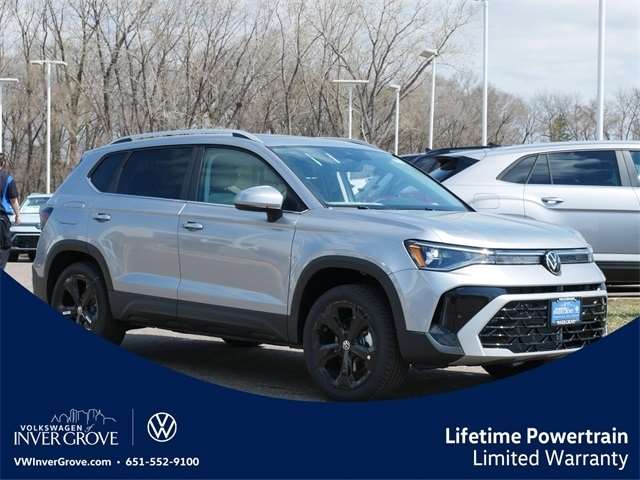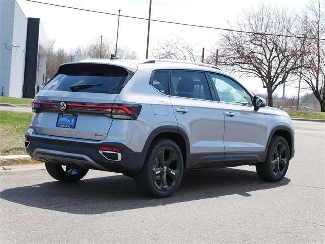 2025 Volkswagen Taos 1.5T SEL AWD, ALL WHEEL DRIVE, APPLE CAR PLAY, ANDRIOD AUTO, REARVIEW CAMERA SYSTEM, BLUETOOTH, INTELLIGENT CRASH RESPONSE SYSTEM, NAVIGATION GPS, BLIND SPOT TECHNOLOGY, HEATED SEATS, HEATED AND COOLED SEATS, HEATED STEEERING WHEEL, PREMIUM WHEELS, MOONROOF, SUNROOF, PANORAMIC MOON ROOF, PUSH BUTTON START, FORWARD COLLISION WARNING, USB PORTS, SIDE MIRROR TURN SIGNALS, VOICE ACTIVATED CONTROLS, backup camera, Leather Seats, Remote Start, Sunroof/Moonroof, Premium Audio Package, Premium Package, Black Wheel Plus Package, Navigation System, Navigation system: VW Car-Net Guide & Inform, VW Care, Wheels: 19`` Black Painted Alloy. Black Wheel Plus Package (Wheels: 19`` Black Painted Alloy), Navigation System, Navigation system: VW Car-Net Guide & Inform, VW Care, 4-Wheel Disc Brakes, 6 Speakers, ABS brakes, Active Blind Spot Monitor, Air Conditioning, Alloy wheels, AM/FM radio: SiriusXM with 360L, Auto High-beam Headlights, Auto-dimming Rear-View mirror, Automatic temperature control, Brake assist, Bumpers: body-color, Compass, Delay-off headlights, Driver door bin, Driver vanity mirror, Dual front impact airbags, Dual front side impact airbags, Electronic Stability Control, Emergency communication system: VW Car-Net Safe & Secure 5-year, Exterior Parking Camera Rear, Four wheel independent suspension, Front anti-roll bar, Front Bucket Seats, Front Center Armrest, Front dual zone A/C, Front reading lights, Front Strut Rear Multi-Link Suspension, Fully automatic headlights, Heated & Actively Ventilated Front Bucket Seats, Heated door mirrors, Heated front seats, Heated steering wheel, Illuminated entry, Leather Shift Knob, Low tire pressure warning, Occupant sensing airbag, Outside temperature display, Overhead airbag, Overhead console, Panic alarm, Passenger door bin, Passenger vanity mirror, Perforated Vienna Leather Seating Surfaces, Power door mirrors, Power driver seat, Power moonroof, Power steering, Power windows, Radio data system, Radio: MIB3 Discover Media AM/FM/HD, Rain sensing wipers, Rear anti-roll bar, Rear seat center armrest, Rear window defroster, Rear window wiper, Remote keyless entry, Security system, Speed control, Speed-sensing steering, Split folding rear seat, Spoiler, Steering wheel mounted audio controls, Tachometer, Telescoping steering wheel, Tilt steering wheel, Traction control, Trip computer, Variably intermittent wipers, Ventilated front seats, and Wheels: 19`` 2-Tone Machined Alloy. Silver AWD 8-Speed Automatic with Tiptronic 1.5L I4 Turbocharged DOHC 16V LEV3-SULEV30 174hp