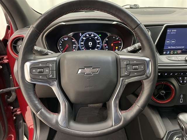 Cherry Red Tintcoat 2022 Chevrolet Blazer RS One Owner, Accident Free History, Trailer Package, Leather Seats, Local Trade, All Wheel Drive, Sunroof/Moonroof, AWD, 4-Wheel Disc Brakes, 6-Speaker Audio System Feature, 6-Way Power Front Passenger Seat Adjuster, ABS brakes, Adaptive Cruise Control, Apple CarPlay/Android Auto, Auto High-beam Headlights, Auto-dimming door mirrors, Auto-dimming Rear-View mirror, Automatic temperature control, Driver Confidence II Package, Electronic Stability Control, Enhanced Automatic Emergency Braking, Enhanced Convenience Package, Exterior Parking Camera Rear, Front dual zone A/C, Fully automatic headlights, Garage door transmitter, HD Surround Vision, Heated door mirrors, Heated Driver & Front Passenger Seats, Heated Rear Outboard Seating Positions, Heated Steering Wheel, High-Intensity Discharge Headlights, LED Headlamps, Memory Settings For Driver Seat & Exterior Mirrors, Navigation System, Outside temperature display, Perforated Leather-Appointed Seat Trim, Power Liftgate, Power Panoramic Tilt-Sliding Sunroof, Power passenger seat, Power Tilt & Telescoping Steering Column, Preferred Equipment Group 1RS, Radio: Chevrolet Infotainment 3 Plus System, Rear Camera Mirror, Rear Camera Mirror Washer, Remote keyless entry, Safety Alert Seat, Security system, SiriusXM w/360L, Steering wheel mounted audio controls, Telescoping steering wheel, Tilt steering wheel, Traction control, Turn signal indicator mirrors, Ventilated Driver & Front Passenger Seats, Wheels: 21 Gloss Black Aluminum, Wireless Charging. Certified. Certification Program Details: * Vehicles Up to 120,000 Miles and 5 Model Years Between 75,001 and 120,000 Miles. 3 Month/3,000 Mile Maximum Care Limited Warranty, Whichever Comes First, Measured From Certified Pre-Owned Purchase Date. Thorough Reconditioning Process Using Authentic Parts. Car Rental Allowance, 3-Month Trial Subscription for SiriusXM GuardianTM and Satellite Radio. This program is only for Non-Stellantis Brand Vehicles that the dealer chooses to CERTIFY. Please contact dealer with any questions. * Vehicle History * Warranty Deductible: $100 * Roadside Assistance Odometer is 1359 miles below market average! 19/26 City/Highway MPG