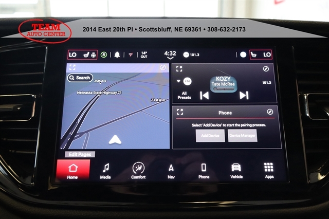 Slide inside and youre greeted by leather-trimmed bucket seats with red accent stitching, a power sunroof, ventilated front seats, heated second row seats, and memory settings that make every drive feel custom-fit. Up front, the large 10.1-inch Uconnect 5 touchscreen with navigation, Apple CarPlay, Android Auto, Bluetooth, and Wi-Fi hotspot capability keeps everything connected and easy.