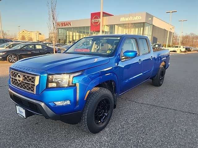 Bluestone Pearl 2024 Nissan Frontier SV 4WD 9-Speed Automatic with Overdrive 3.8L DI DOHC 24V V6 **LONG BOX**, Frontier SV, 4D Crew Cab, 3.8L DI DOHC 24V V6, 9-Speed Automatic with Overdrive, 4WD, Bluestone Pearl, Charcoal w/Cloth Seat Trim, 17`` Alloy Wheels, Apple CarPlay/Android Auto, Blind Spot Warning, Fender Audio Package, Fender Premium Audio System w/10 Speakers, Heated Front Bucket Seats, Heated steering wheel, High Beam Assist (HBA), Intelligent Cruise Control, Lane Departure Warning System, Partial Under-Seat Storage Delete, Rear Automatic Braking (RAB), Rear Cross Traffic Alert (RCTA), Rear Sonar System, Technology Package, Tow Package (T11).