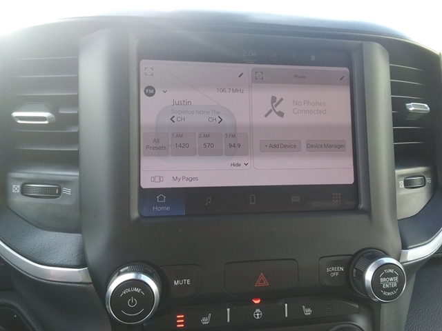| BIG HORN LEVEL 1 EQUIPMENT GROUP -inc: Google Android Auto Bluetooth Handsfree Phone & Audio USB Host Flip Rear Window Defroster Integrated Center Stack Radio Rear View Auto Dim Mirror For More Info Call 800-643-2112 Rear Power Sliding Window Rear Dome w/On/Off Switch Lamp Front Fog Lamps Connectivity - US/Canada Glove Box Lamp 4G LTE Wi-Fi Hot Spot Auto Dim Exterior Driver Mirror Heated Front Seats Radio: Uconnect 5 W w/8.4 Display Heated Steering Wheel 8.4 Touchscreen Display Class IV Receiver Hitch Black Premium Power Mirrors Apple CarPlay Big Horn IP Badge SiriusXM Satellite Radio Exterior Mirrors w/Supplemental Signals Exterior Mirrors Courtesy Lamps Passenger Sun Visor w/Illuminated Mirror Electric Shift On Demand Transfer Case Power-Folding Mirrors 2nd Row In Floor Storage Bins |