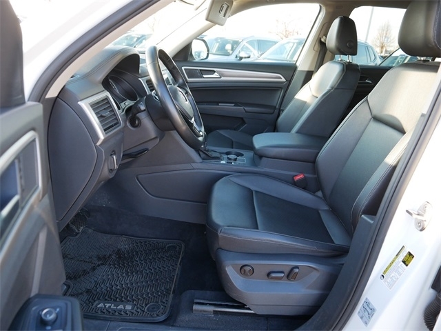 AWD, ALL WHEEL DRIVE, APPLE CAR PLAY, ANDRIOD AUTO, REARVIEW CAMERA SYSTEM, BLUETOOTH, HEATED SEATS, 2ND ROW CAPTAINS CHAIRS, 3RD ROW SEATING, backup camera, Remote Start, AM/FM radio: SiriusXM, Exterior Parking Camera Rear, Heated Front Bucket Seats, Heated front seats, Radio: Composition Media 8.0`` Touchscreen w/CD, Trailer Hitch, V-Tex Leatherette Seating Surfaces. Clean CARFAX. Pure White 2018 Volkswagen Atlas 3.6L V6 SE AWD 3.6L VR6 8-Speed Automatic with Tiptronic