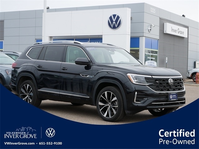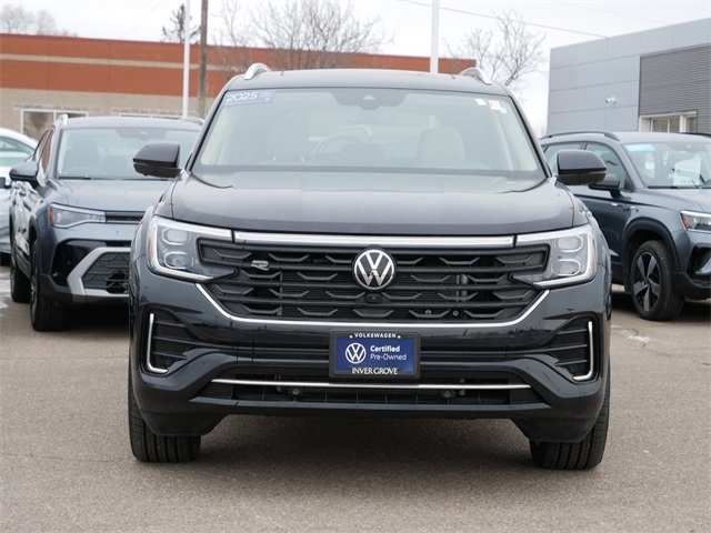 Certified. Volkswagen logo puddle lights. Clean CARFAX. Deep Black Pearl 2025 Volkswagen Atlas 2.0T SEL Premium R-Line AWD 2.0L TSI 8-Speed Automatic