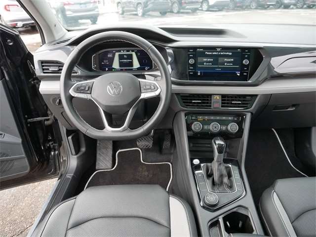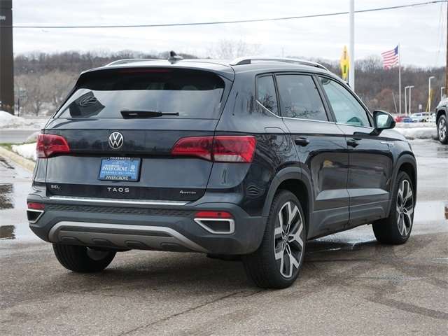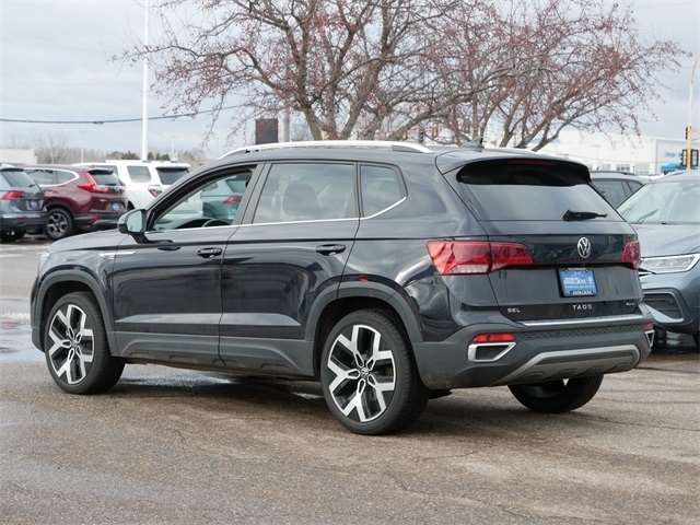 Certified. AWD, ALL WHEEL DRIVE, APPLE CAR PLAY, ANDRIOD AUTO, REARVIEW CAMERA SYSTEM, BLUETOOTH, INTELLIGENT CRASH RESPONSE SYSTEM, NAVIGATION GPS, BLIND SPOT TECHNOLOGY, HEATED SEATS, HEATED STEEERING WHEEL, MOONROOF, SUNROOF, PANORAMIC MOON ROOF, PUSH BUTTON START, FORWARD COLLISION WARNING, USB PORTS, SIDE MIRROR TURN SIGNALS, VOICE ACTIVATED CONTROLS, 2 SMART KEYS WITH REMOTE, backup camera, Remote Start, Sunroof/Moonroof. Clean CARFAX. Deep Black Pearl 2023 Volkswagen Taos 1.5T SEL AWD 1.5L I4 Turbocharged DOHC 16V LEV3-SULEV30 158hp 7-Speed DSG Automatic with Tiptronic