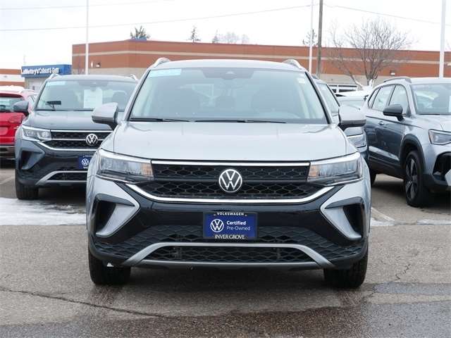 Certified. AWD, ALL WHEEL DRIVE, APPLE CAR PLAY, ANDRIOD AUTO, REARVIEW CAMERA SYSTEM, BLUETOOTH, HEATED SEATS, HEATED STEEERING WHEEL, Remote Start, Black Wheel Package, CloudTex & Cloth Seating Surfaces, Exterior Parking Camera Rear, Heated Front Comfort Seats, Heated front seats, Heated steering wheel, Wheels: 18`` Black Painted Alloy. Clean CARFAX. Pyrite Silver Metallic 2023 Volkswagen Taos 1.5T SE AWD 1.5L I4 Turbocharged DOHC 16V LEV3-SULEV30 158hp 7-Speed DSG Automatic with Tiptronic