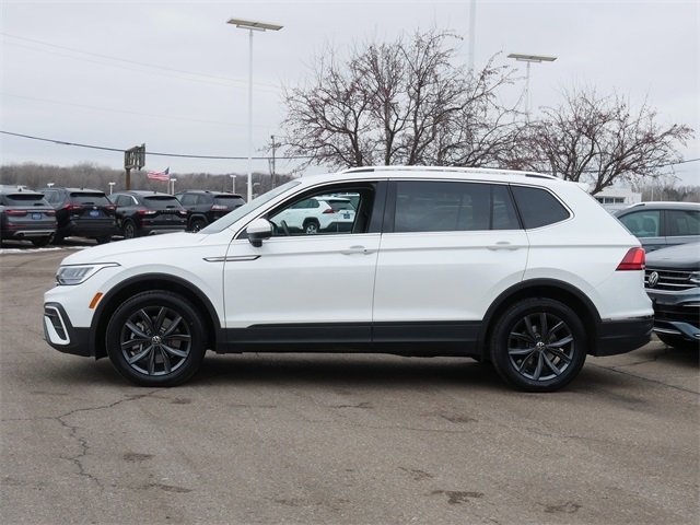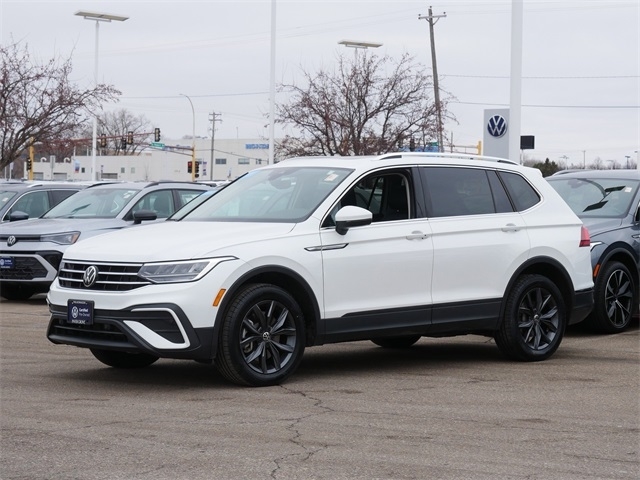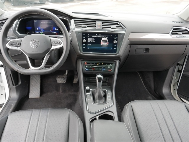 Certified. APPLE CAR PLAY, ANDRIOD AUTO, REARVIEW CAMERA SYSTEM, BLUETOOTH, BLIND SPOT TECHNOLOGY, HEATED SEATS, MOONROOF, SUNROOF, PANORAMIC MOON ROOF, PUSH BUTTON START, USB PORTS, backup camera, Remote Start, SE Package, Sunroof/Moonroof, 4 NEW TIRES!, 3rd row seats: bench, Exterior Parking Camera Rear, Heated Front Comfort Seats, Heated front seats, Perforated V-Tex Leatherette Seating Surfaces, Power Liftgate, Radio: MIB3 Composition Media AM/FM/HD. Opal White Pearl 2023 Volkswagen Tiguan 2.0T SE FWD 2.0L TSI DOHC 8-Speed Automatic with Tiptronic