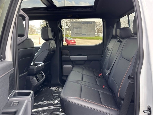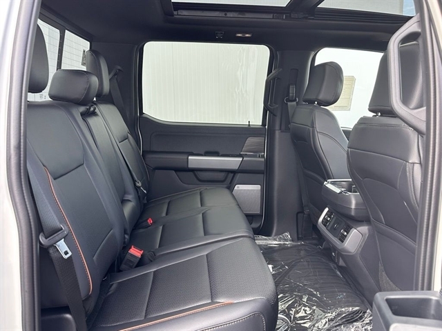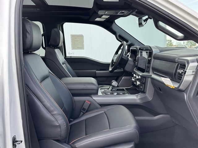 Safety is paramount, and this F-150 Lariat delivers with advanced features like electronic stability control, traction control, and an emergency communication system. The blind-spot monitoring and rear cross-traffic alert systems provide added peace of mind when maneuvering.