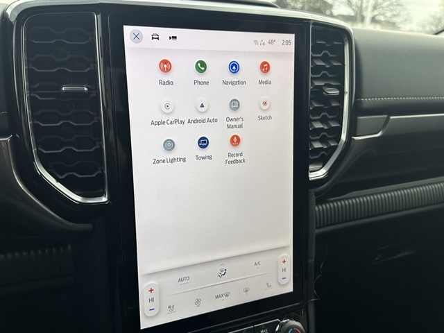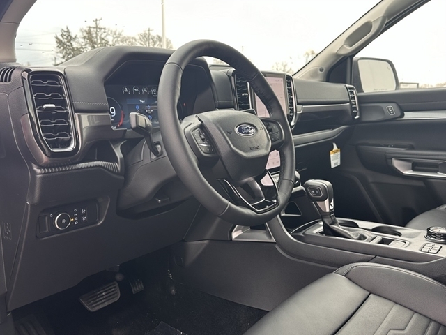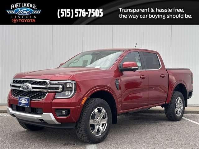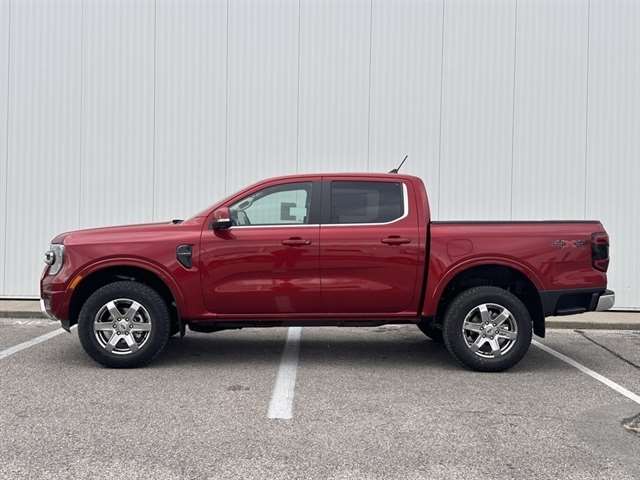Ruby Red Metallic Tinted Clearcoat 2025 Ford Ranger Lariat 4WD 10-Speed Automatic EcoBoost 2.3L I4 GTDi DOHC Turbocharged VCT Equipment Group 500A, Chrome Accent Package, Trailer Tow Package, Heated steering wheel, Integrated Box Side Step, Wheels: 18`` Chrome-Like PVD.