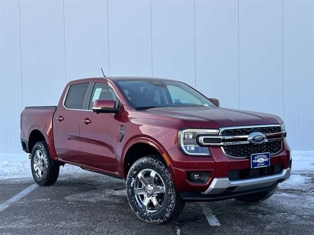 Ruby Red Metallic Tinted Clearcoat 2025 Ford Ranger Lariat 4WD 10-Speed Automatic EcoBoost 2.3L I4 GTDi DOHC Turbocharged VCT Equipment Group 500A, Chrome Accent Package, Trailer Tow Package, Convenience Package, Integrated Box Side Step.