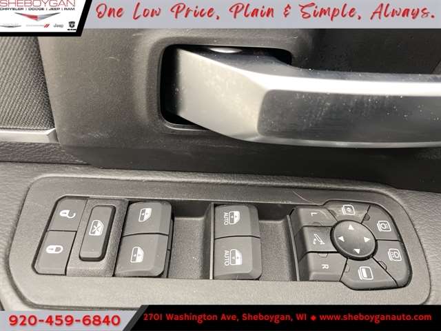 | BIG HORN LEVEL 2 EQUIPMENT GROUP -inc: Blind Spot & Cross Path Detection LED Tail Lamps Red Tail Lamp Bezels Rear View Auto Dim Mirror Power Adjustable Pedals Rear Power Sliding Window Rear Dome w/On/Off Switch Lamp Glove Box Lamp Auto Power-Folding Mirrors Footwell Courtesy Lamp 115V Auxiliary Rear Power Outlet Media Hub w/2 Charge Only USBs Anti-Spin Differential Rear Axle Heated Front Seats Heated Steering Wheel Foam Bottle Insert (Door Trim Panel) Exterior 115V AC Outlet Dampened Tailgate Big Horn IP Badge Forward & Reverse Utility Lights Locking Lower Glove Box Remote Start System 400W Inverter 9 Alpine Speakers w/Subwoofer Power Heated Folding Telescopic Mirrors Dual Wireless Charging Pad Steering Wheel Mounted Audio Controls Dual Glove Boxes 115V Auxiliary Front Power Outlet Cluster 7.0 TFT Color Display Universal Garage Door Opener Luxury Steering Wheel 2nd Row In Floor Storage Bins Power Telescoping Mirrors Sun Visors w/Illuminated Vanity Mi |