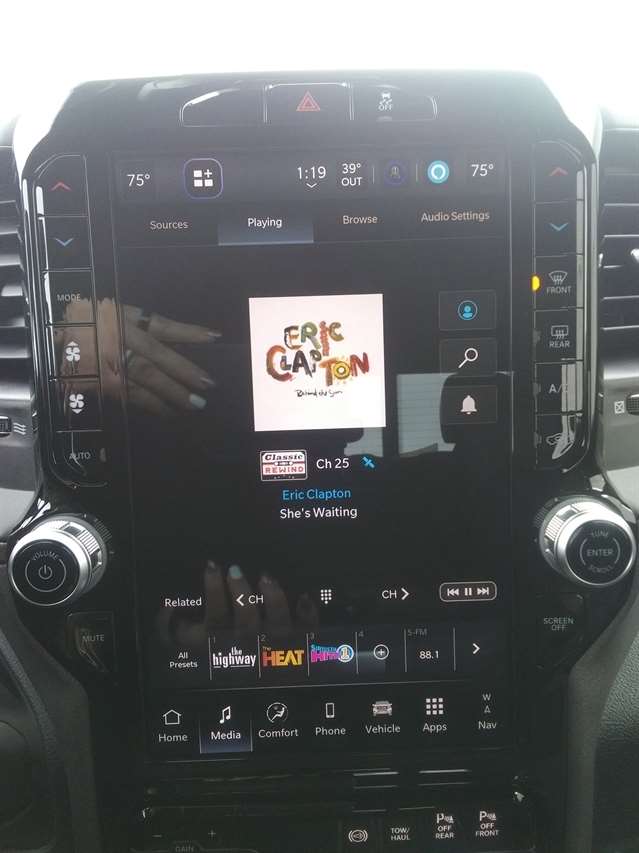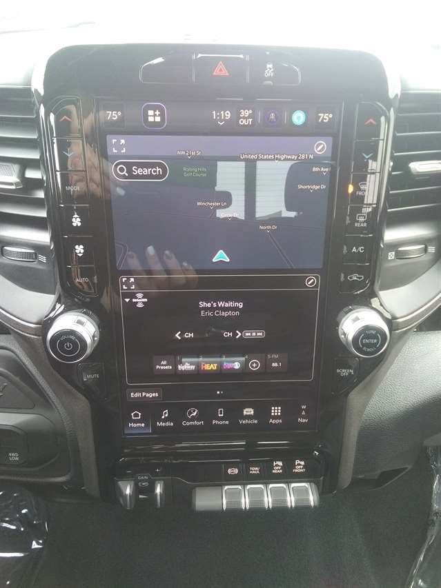 TRADESMAN LEVEL 2 EQUIPMENT GROUP -inc: Convenience Group Emergency Vehicle Alert System (EVAS) 12 Touchscreen Display Anti-Spin Differential Rear Axle Mirror Running Lights Exterior 115V AC Outlet Alexa Built-In Power-Adjustable Convex Aux Mirrors Disassociated Touchscreen Display Matte Black Mesh Grille w/Chrome 115V Auxiliary Front Power Outlet Center Hub Tires: LT275/70R18E BSW AS Rear View Auto Dim Mirror Rear Power Sliding Window Tinted Acoustic Windshield Glass GPS Navigation Bright Rear Bumper Exterior Mirrors w/Heating Element Chrome Grille Surround MOPAR Black Tubular Side Steps SiriusXM w/360L Connected Travel & Traffic Services Wheels: 18 x 8.0 Steel Chrome Clad Carpet Floor Covering Off-Road Info Pages Trailer Tow Pages 400W Inverter HD Radio Power Heated Folding Telescope Mirrors Radio: Uconnect 5 Nav w/12.0 Display Exterior Mirrors w/Supplemental Signals Exterior Mirrors Courtesy Lamps Air Conditioning ATC w/Dual Zone Control Power |