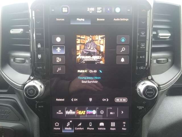 | TRADESMAN LEVEL 2A EQUIPMENT GROUP -inc: Convenience Group For Details Visit DriveUconnect.com For More Info Call 800-643-2112 Emergency Vehicle Alert System (EVAS) 12 Touchscreen Display Mirror Running Lights Exterior 115V AC Outlet Alexa Built-In Power-Adjustable Convex Aux Mirrors Disassociated Touchscreen Display Bright Wheel Skins Matte Black Mesh w/Chrome Grille 115V Auxiliary Front Power Outlet Center Hub Rear View Auto Dim Mirror Rear Power Sliding Window Tinted Acoustic Windshield Glass GPS Navigation Bright Rear Bumper Exterior Mirrors w/Heating Element Chrome Grille Surround MOPAR Black Tubular Side Steps SiriusXM w/360L Connected Travel & Traffic Services Carpet Floor Covering Off-Road Information Pages Trailer Tow Pages 400W Inverter HD Radio Power Heat Fold Telescopic Mirrors Radio: Uconnect 5 Nav w/12.0 Display Exterior Mirrors w/Supplemental Signals Exterior Mirrors Courtesy Lamps Air Conditioning ATC w/Dual Zone Control Power Adjus |