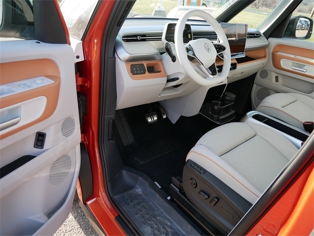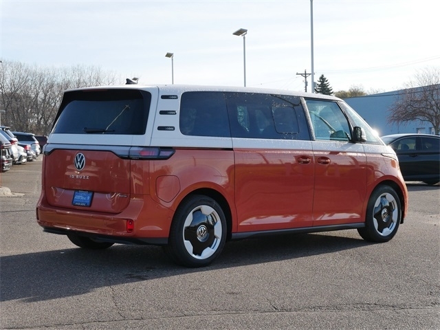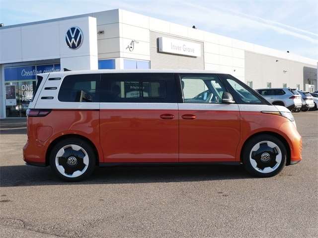 2025 Volkswagen ID. Buzz Pro S Plus AWD, ALL WHEEL DRIVE, APPLE CAR PLAY, ANDRIOD AUTO, REARVIEW CAMERA SYSTEM, BLUETOOTH, INTELLIGENT CRASH RESPONSE SYSTEM, NAVIGATION GPS, BLIND SPOT TECHNOLOGY, HEATED SEATS, HEATED AND COOLED SEATS, HEATED STEEERING WHEEL, PREMIUM WHEELS, MOONROOF, SUNROOF, PANORAMIC MOON ROOF, 3RD ROW SEATING, PUSH BUTTON START, FORWARD COLLISION WARNING, USB PORTS, SIDE MIRROR TURN SIGNALS, VOICE ACTIVATED CONTROLS, backup camera, Leather Seats, Sunroof/Moonroof, VW Care. VW Care, 14 Speakers, 3rd row seats: split-bench, ABS brakes, Air Conditioning, Alloy wheels, Auto High-beam Headlights, Auto-dimming Rear-View mirror, Automatic temperature control, Brake assist, Bumpers: body-color, Delay-off headlights, Driver door bin, Driver vanity mirror, Driver`s Seat Mounted Armrest, Dual front impact airbags, Dual front side impact airbags, Electronic Stability Control, Emergency communication system: VW Car-Net Safe & Secure 5-year, Exterior Parking Camera Rear, Four wheel independent suspension, Front anti-roll bar, Front Bucket Seats, Front dual zone A/C, Front fog lights, Front reading lights, Fully automatic headlights, harman/kardonĀ® Speakers, Heads-Up Display, Heated & Actively Ventilated Front Seats, Heated door mirrors, Heated front seats, Heated rear seats, Heated steering wheel, Illuminated entry, Leather steering wheel, Low tire pressure warning, Memory seat, Navigation System, Occupant sensing airbag, Outside temperature display, Overhead airbag, Panic alarm, Passenger door bin, Passenger seat mounted armrest, Passenger vanity mirror, Perforated V-Tex Leatherette Seating Surfaces, Power door mirrors, Power driver seat, Power Liftgate, Power passenger seat, Power steering, Power windows, Radio data system, Radio: Discover Pro Max w/Touchscreen Navigation, Rain sensing wipers, Rear air conditioning, Rear anti-roll bar, Rear reading lights, Rear window defroster, Rear window wiper, Remote keyless entry, Speed control, Speed-sensing steering, Split folding rear seat, Spoiler, Steering wheel mounted audio controls, TBD Axle Ratio, Telescoping steering wheel, Tilt steering wheel, Traction control, Trip computer, Turn signal indicator mirrors, Variably intermittent wipers, Ventilated front seats, and Wheels: 20`` Two-Tone Disc Alloy. Energetic Orange AWD Single-Speed Automatic Electric Motor
