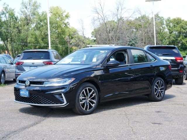 2025 Volkswagen Jetta 1.5T SE APPLE CAR PLAY, ANDRIOD AUTO, REARVIEW CAMERA SYSTEM, BLUETOOTH, INTELLIGENT CRASH RESPONSE SYSTEM, BLIND SPOT TECHNOLOGY, HEATED SEATS, MOONROOF, SUNROOF, PANORAMIC MOON ROOF, PUSH BUTTON START, FORWARD COLLISION WARNING, USB PORTS, SIDE MIRROR TURN SIGNALS, Remote Start, Sunroof/Moonroof, GRIGIO/BLACK Artificial Leather, Power Tilting & Sliding Sunroof, Sunroof Package, VW Care. Deep Black 8-Speed Automatic with Tiptronic FWD 1.5L I-4 DI DOHC Turbocharged
