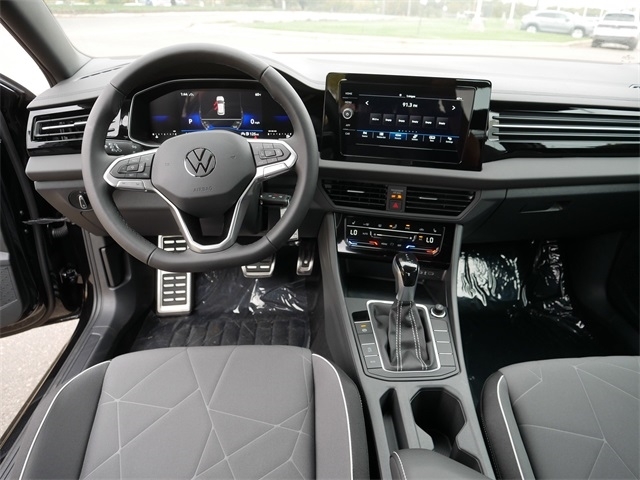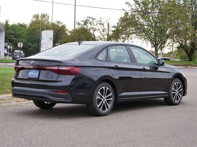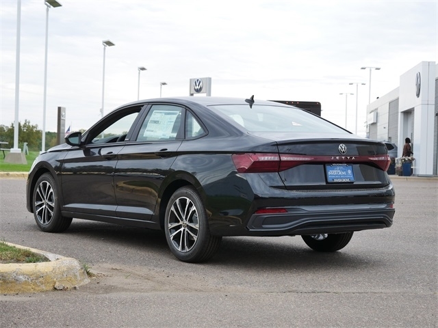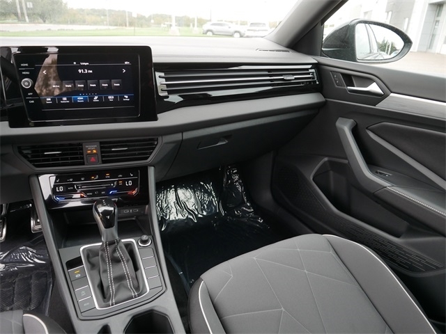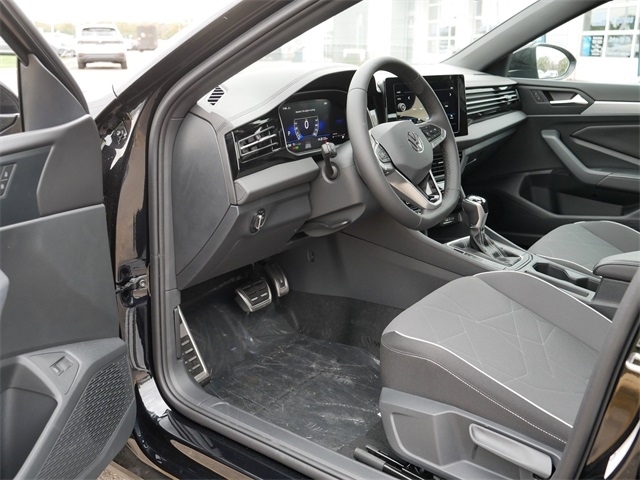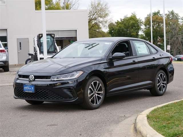 2025 Volkswagen Jetta 1.5T Sport APPLE CAR PLAY, ANDRIOD AUTO, REARVIEW CAMERA SYSTEM, BLUETOOTH, INTELLIGENT CRASH RESPONSE SYSTEM, BLIND SPOT TECHNOLOGY, HEATED SEATS, PREMIUM WHEELS, PUSH BUTTON START, FORWARD COLLISION WARNING, USB PORTS, SIDE MIRROR TURN SIGNALS, backup camera, BLACK CLOTH Cloth, VW Care. BLACK CLOTH Cloth, VW Care, 4 Speakers, 4-Wheel Disc Brakes, ABS brakes, Active Blind Spot Monitor, Air Conditioning, Alloy wheels, Auto-dimming Rear-View mirror, Automatic temperature control, Brake assist, Bumpers: body-color, Cloth Seat Trim, Delay-off headlights, Driver door bin, Driver vanity mirror, Dual front impact airbags, Dual front side impact airbags, Electronic Stability Control, Emergency communication system: VW Car-Net Safe & Secure 5-year, Exterior Parking Camera Rear, Front anti-roll bar, Front Bucket Seats, Front Center Armrest, Front dual zone A/C, Front wheel independent suspension, Fully automatic headlights, Heated door mirrors, Heated Front Seats, Heated front seats, Illuminated entry, Leather Shift Knob, Leather steering wheel, Low tire pressure warning, Occupant sensing airbag, Outside temperature display, Overhead airbag, Overhead console, Panic alarm, Passenger door bin, Passenger vanity mirror, Power door mirrors, Power steering, Power windows, Radio data system, Radio: MIB3 Composition Color w/8`` Touchscreen, Rain sensing wipers, Rear anti-roll bar, Rear reading lights, Rear seat center armrest, Rear window defroster, Remote keyless entry, Speed control, Speed-sensing steering, Split folding rear seat, Steering wheel mounted audio controls, Tachometer, Telescoping steering wheel, Tilt steering wheel, Traction control, Trip computer, Variably intermittent wipers, and Wheels: 17`` 2-Tone Machined Alloy. Deep Black FWD 8-Speed Automatic with Tiptronic 1.5L I-4 DI DOHC Turbocharged