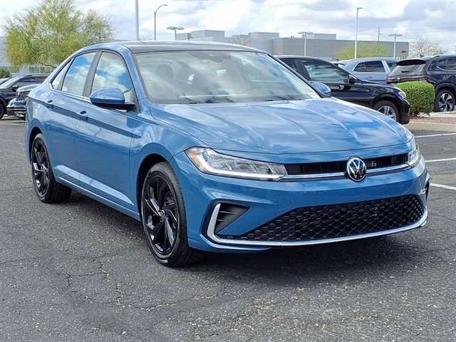 This vehicle is a 2026 Volkswagen Jetta SE, with a monterey blue pearl exterior and a grigio & black leather interior. It has a 1.5 liter 4 cylinder engine with a turbocharged powertrain, giving it an impressive fuel economy of 29 mpg in the city and 40 mpg on the highway. It also has a crash test rating of 5 out of 5 stars, making it one of the safest cars on the road today. It also comes with a number of features such as touch screen display, Bluetooth audio connection, blind spot sensor, hill start assist, Bluetooth phone connectivity, and leather seats. This car is truly one of a kind and will surely turn heads wherever it goes! Contact Details: Lunde`s Peoria Volkswagen, 8801 w Bell Road, Peoria, AZ, 85382, sales@peoriavw.dealerspace.com, 8663647572.