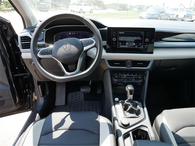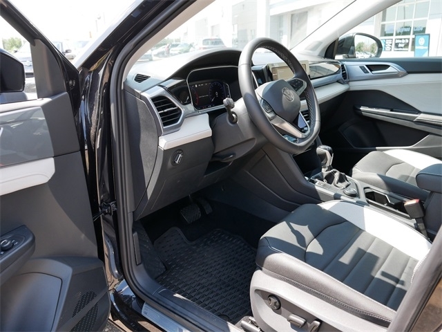 2025 Volkswagen Taos 1.5T SEL AWD, ALL WHEEL DRIVE, APPLE CAR PLAY, ANDRIOD AUTO, REARVIEW CAMERA SYSTEM, BLUETOOTH, INTELLIGENT CRASH RESPONSE SYSTEM, NAVIGATION GPS, BLIND SPOT TECHNOLOGY, HEATED SEATS, HEATED AND COOLED SEATS, HEATED STEEERING WHEEL, PREMIUM WHEELS, MOONROOF, SUNROOF, PANORAMIC MOON ROOF, PUSH BUTTON START, USB PORTS, SIDE MIRROR TURN SIGNALS, VOICE ACTIVATED CONTROLS, 2 SMART KEYS WITH REMOTE, backup camera, Leather Seats, Remote Start, Sunroof/Moonroof, VW Care. VW Care, 4-Wheel Disc Brakes, 6 Speakers, ABS brakes, Active Blind Spot Monitor, Air Conditioning, Alloy wheels, AM/FM radio: SiriusXM with 360L, Auto High-beam Headlights, Auto-dimming Rear-View mirror, Automatic temperature control, Brake assist, Bumpers: body-color, Compass, Delay-off headlights, Driver door bin, Driver vanity mirror, Dual front impact airbags, Dual front side impact airbags, Electronic Stability Control, Emergency communication system: VW Car-Net Safe & Secure 5-year, Exterior Parking Camera Rear, Four wheel independent suspension, Front anti-roll bar, Front Bucket Seats, Front Center Armrest, Front dual zone A/C, Front reading lights, Front Strut Rear Multi-Link Suspension, Fully automatic headlights, Heated & Actively Ventilated Front Bucket Seats, Heated door mirrors, Heated front seats, Heated steering wheel, Illuminated entry, Leather Shift Knob, Low tire pressure warning, Navigation system: VW Car-Net Guide & Inform, Occupant sensing airbag, Outside temperature display, Overhead airbag, Overhead console, Panic alarm, Passenger door bin, Passenger vanity mirror, Perforated Vienna Leather Seating Surfaces, Power door mirrors, Power driver seat, Power moonroof, Power steering, Power windows, Radio data system, Radio: MIB3 Discover Media AM/FM/HD, Rain sensing wipers, Rear anti-roll bar, Rear seat center armrest, Rear window defroster, Rear window wiper, Remote keyless entry, Security system, Speed control, Speed-sensing steering, Split folding rear seat, Spoiler, Steering wheel mounted audio controls, Tachometer, Telescoping steering wheel, Tilt steering wheel, Traction control, Trip computer, Variably intermittent wipers, Ventilated front seats, and Wheels: 19`` 2-Tone Machined Alloy. Deep Black Pearl AWD 8-Speed Automatic with Tiptronic 1.5L I4 Turbocharged DOHC 16V LEV3-SULEV30 174hp
