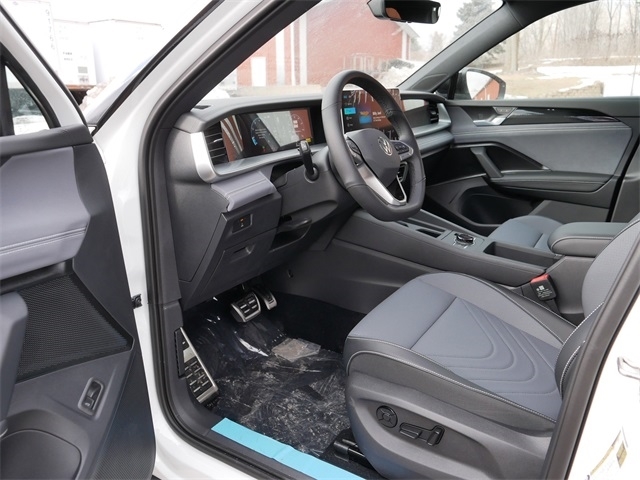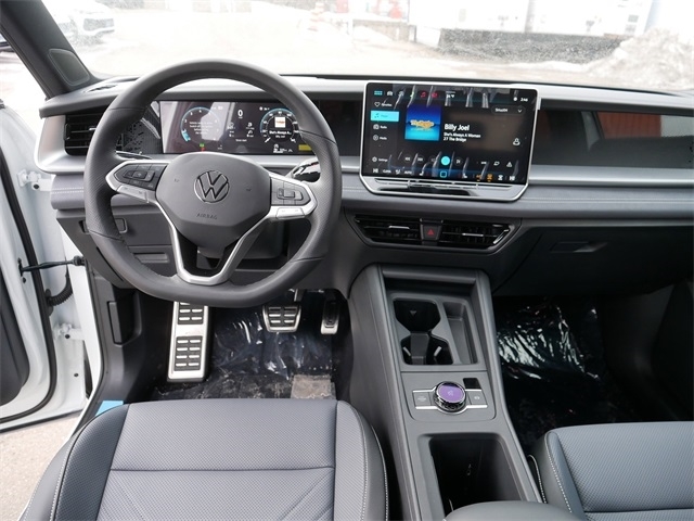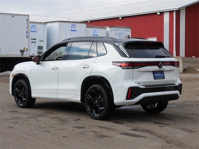 2026 Volkswagen Tiguan 2.0T SE R-Line Black AWD. AWD, 4-Wheel Disc Brakes, 4-Wheel Independent Suspension, 7 Speakers, ABS brakes, Air Conditioning, Alloy wheels, AM/FM radio: SiriusXM with 360L, Auto High-beam Headlights, Auto-dimming Rear-View mirror, Automatic temperature control, Brake assist, Bumpers: body-color, Compass, Delay-off headlights, Driver door bin, Driver vanity mirror, Dual front impact airbags, Dual front side impact airbags, Electronic Stability Control, Emergency communication system, Exterior Parking Camera Rear, Four wheel independent suspension, Front anti-roll bar, Front Bucket Seats, Front Center Armrest, Front dual zone A/C, Front reading lights, Fully automatic headlights, Heads-Up Display, Heated door mirrors, Heated Front Seats, Heated front seats, Illuminated entry, Knee airbag, Leather Shift Knob, Leather steering wheel, Low tire pressure warning, Occupant sensing airbag, Outside temperature display, Overhead airbag, Overhead console, Panic alarm, Passenger door bin, Passenger vanity mirror, Perforated V-Tex Leatherette Seating Surfaces, Power door mirrors, Power driver seat, Power Liftgate, Power moonroof: Panoramic, Power steering, Power windows, Radio data system, Radio: MIB4 Composition Media Touchscreen with AM/FM, Rain sensing wipers, Rear anti-roll bar, Rear reading lights, Rear seat center armrest, Rear side impact airbag, Rear window defroster, Rear window wiper, Remote keyless entry, Security system, Speed control, Speed-sensing steering, Split folding rear seat, Spoiler, Sport steering wheel, Steering wheel mounted audio controls, Tachometer, Telescoping steering wheel, Tilt steering wheel, Traction control, Trip computer, Turn signal indicator mirrors, Variably intermittent wipers, and Wheels: 20`` Black Painted Alloy. Opal White with Deep Black Roof AWD 8-Speed Automatic 2.0L TSI DOHC Price does not include tax, title, license, and document fees. Price includes: $1000 - Customer Bonus. Exp. 03/02/2026
