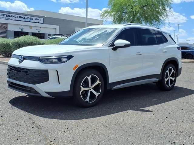 The 2026 Volkswagen Tiguan SE is a vehicle that is sure to turn heads. It has a pure white exterior and a grigio & black leather interior, giving it a sleek and modern look. This car is equipped with a 2.0 liter 4 cylinder engine, turbocharged, and FWD, making it an efficient and reliable motorcar. It also has an impressive fuel economy of 25 mpg in the city and 32 mpg on the highway. Safety is not compromised with this car as it has a crash test rating of 5 out of 5 stars. Additionally, it comes with many features such as touch screen display, Bluetooth audio connection, blind spot sensor, hill start assist, and leather seats for added comfort. The 2026 Volkswagen Tiguan SE is the perfect car for those looking for style, performance, and safety all in one package. Contact Details: Lunde`s Peoria Volkswagen, 8801 w Bell Road, Peoria, AZ, 85382, sales@peoriavw.dealerspace.com, 8663647572.