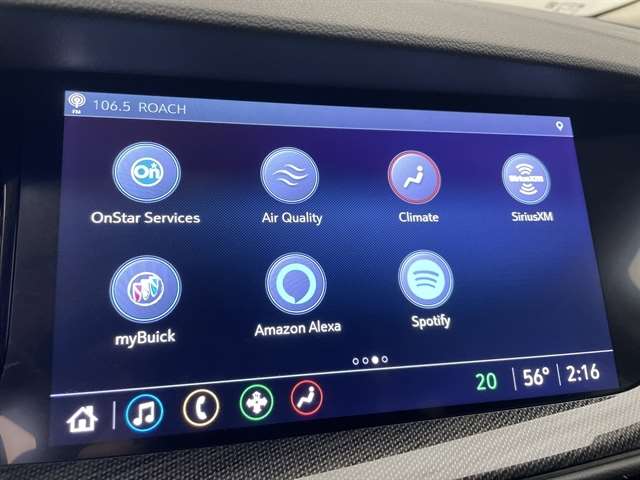 | CARGO COMPARTMENT COVER REAR | AUDIO SYSTEM 10.2 DIAGONAL BUICK INFOTAINMENT SYSTEM includes multi-touch display AM/FM/SiriusXM stereo Bluetooth streaming audio for music and most phones Wireless Apple Carplay/Wireless Android Auto for compatible phones advanced voice recognition in-vehicle apps personalized profiles for infotainment and vehicle settings |