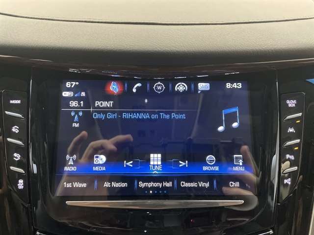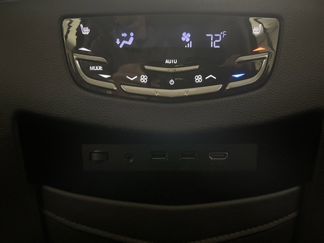| CADILLAC USER EXPERIENCE WITH EMBEDDED NAVIGATION AM/FM stereo with 8 diagonal color information display featuring touch response haptic feedback gesture recognition Natural Voice Recognition Phone Integration for Apple CarPlay and Android Auto capability for compatible phone Connected Apps and Teen Driver. Five USB ports including one in the articulating storage door/bin and auxiliary audio port (STD) |