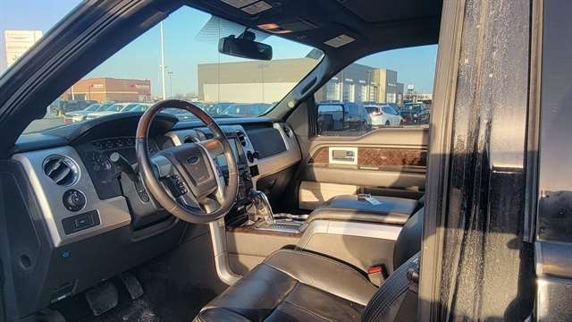 Black 2014 Ford F-150 Platinum Trailer Package, Leather Seats, Local Trade, 4x4 / 4WD / 4 Wheel Drive / AWD, Bedliner, Sunroof/Moonroof, 4WD, 10 Speakers, 4-Wheel Disc Brakes, ABS brakes, Adjustable pedals, Alloy wheels, Auto-dimming door mirrors, Auto-dimming Rear-View mirror, Automatic temperature control, Compass, DVD-Audio, Electronic Stability Control, Exterior Parking Camera Rear, Front Bucket Seats, Front dual zone A/C, Front fog lights, Fully automatic headlights, GVWR: 7,350 lbs Payload Package, Heated door mirrors, Heated front seats, Heated rear seats, High-Intensity Discharge Headlights, Illuminated entry, Low tire pressure warning, Memory seat, Navigation, Navigation System, Outside temperature display, Overhead Console w/Single Storage Bin, Pedal memory, Power Moonroof, Premium audio system: Sony, Rain sensing wipers, Remote keyless entry, Security system, Speed control, Steering wheel mounted audio controls, SYNC Voice Activated Communication & Entertainment, SYNC w/MyFord Touch & SYNC Services, Telescoping steering wheel, Tilt steering wheel, Traction control, Trailer Brake Controller, Trip computer, Ventilated front seats. Odometer is 7966 miles below market average!