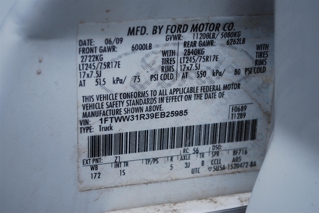 | VIN | 1FTWW31R39EB25985 |
