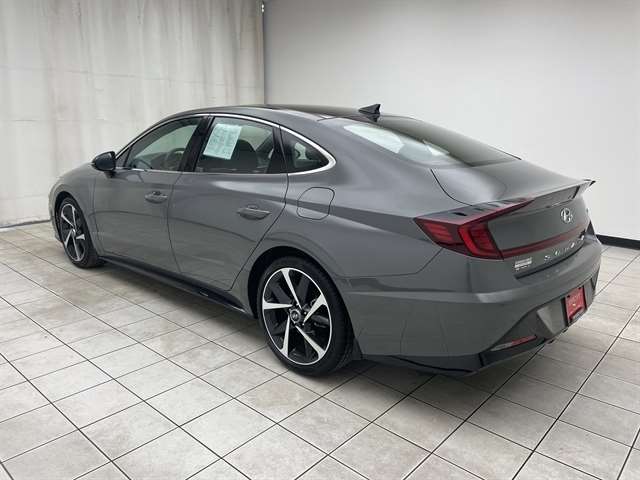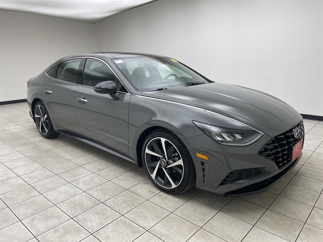 Hampton Gray 2021 Hyundai Sonata SEL Plus One Owner, Accident Free History, Black Artificial Leather, 4-Wheel Disc Brakes, ABS brakes, Apple CarPlay & Android Auto, Auto High-beam Headlights, Auto-dimming Rear-View mirror, Automatic temperature control, Bose Premium Audio, Dinamica Suede/Leatherette Seating Surfaces, Electronic Stability Control, Exterior Parking Camera Rear, Front dual zone A/C, Fully automatic headlights, Heated door mirrors, Heated Front Bucket Seats, Highway Drive Assist (HDA), LED Interior Lights, Option Group 05, Panoramic Sunroof, Power door mirrors, Radio: AM/FM/HD/SiriusXM Display Audio w/Nav, Remote keyless entry, Security system, Split folding rear seat, Steering wheel mounted audio controls, Tech Package, Telescoping steering wheel, Tilt steering wheel, Traction control, Trip computer, Turn signal indicator mirrors, Wheels: 19 x 8.0J Aluminum Alloy, Wireless Device Charging. Odometer is 31480 miles below market average! 27/37 City/Highway MPG