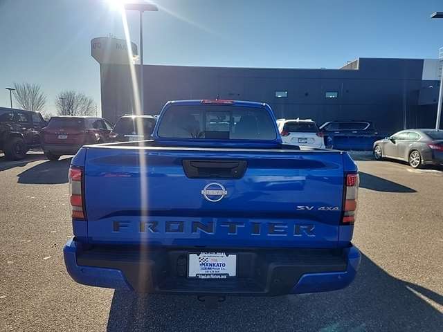 Bluestone Pearl 2024 Nissan Frontier SV 4WD 9-Speed Automatic with Overdrive 3.8L DI DOHC 24V V6 **LONG BOX**, Frontier SV, 4D Crew Cab, 3.8L DI DOHC 24V V6, 9-Speed Automatic with Overdrive, 4WD, Bluestone Pearl, Charcoal w/Cloth Seat Trim, 17`` Alloy Wheels, Apple CarPlay/Android Auto, Blind Spot Warning, Fender Audio Package, Fender Premium Audio System w/10 Speakers, Heated Front Bucket Seats, Heated steering wheel, High Beam Assist (HBA), Intelligent Cruise Control, Lane Departure Warning System, Partial Under-Seat Storage Delete, Rear Automatic Braking (RAB), Rear Cross Traffic Alert (RCTA), Rear Sonar System, Technology Package, Tow Package (T11).