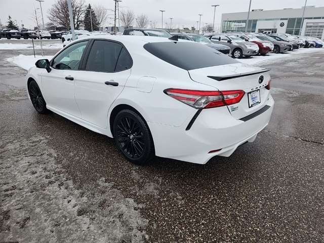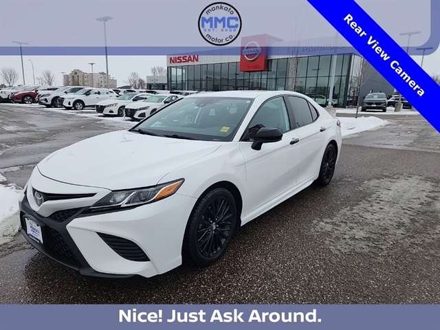 Discover the allure of the 2019 Toyota Camry SE, a sleek and sophisticated sedan that seamlessly blends style, performance, and advanced technology. This Nightshade Special Edition model exudes a bold, commanding presence with its striking black accents, creating a striking contrast against the crisp white exterior.