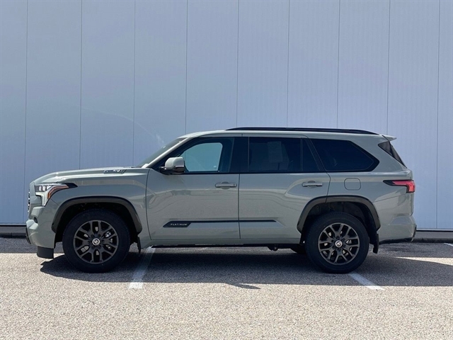 CARFAX One-Owner. Lunar Rock 2024 Toyota Sequoia Platinum Hybrid 4WD 10-Speed Automatic V6 Hybrid Automatic Power Extending Running Boards, Door Edge Guard (TMS), Head Up Display (HUD).
