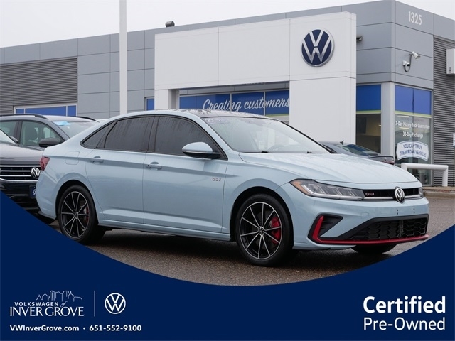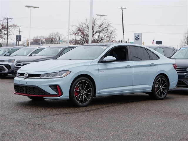 Certified. APPLE CAR PLAY, ANDRIOD AUTO, REARVIEW CAMERA SYSTEM, BLUETOOTH, BLIND SPOT TECHNOLOGY, HEATED SEATS, HEATED AND COOLED SEATS, HEATED STEEERING WHEEL, MOONROOF, SUNROOF, PUSH BUTTON START, backup camera, Leather Seats, Remote Start, Sunroof/Moonroof, Premium Audio Package, Active Blind Spot Monitor, Exterior Parking Camera Rear, heated and actively ventilated front seats, Heated front seats, Heated steering wheel, Memory seat, MIB3 composition media with 8`` touchscreen radio, perforated vienna leather seating surfaces, Power moonroof, Ventilated front seats. Clean CARFAX. Monument Gray 2025 Volkswagen Jetta GLI 2.0T Autobahn FWD 2.0L TSI DOHC Automatic with Tiptronic