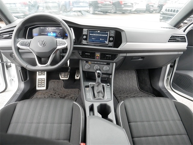 Certified. APPLE CAR PLAY, ANDRIOD AUTO, REARVIEW CAMERA SYSTEM, BLUETOOTH, BLIND SPOT TECHNOLOGY, NEW REAR PADS AND ROTORS, TITAN BLACK Cloth. Clean CARFAX. Pure White 2024 Volkswagen Jetta 1.5T Sport FWD 1.5L I-4 DI DOHC Turbocharged 8-Speed Automatic with Tiptronic