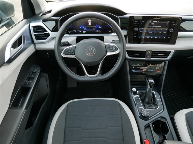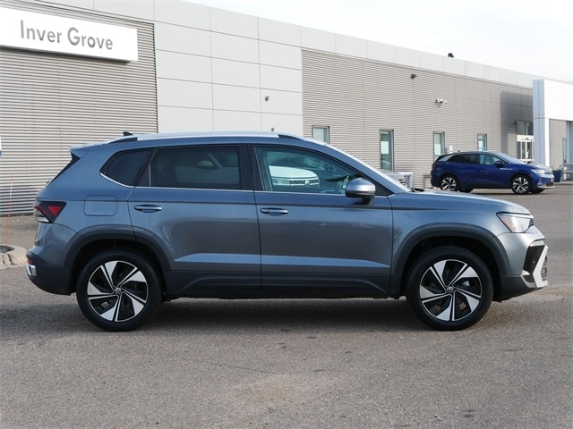 Certified. AWD, ALL WHEEL DRIVE, APPLE CAR PLAY, ANDRIOD AUTO, REARVIEW CAMERA SYSTEM, BLUETOOTH, BLIND SPOT TECHNOLOGY, HEATED SEATS, HEATED STEEERING WHEEL, MOONROOF, SUNROOF, PANORAMIC MOON ROOF, PUSH BUTTON START, FORWARD COLLISION WARNING, USB PORTS, 2 SMART KEYS WITH REMOTE, backup camera, Remote Start, SE Package, Active Blind Spot Monitor, CloudTex & Cloth Seating Surfaces, Exterior Parking Camera Rear, Heated Front Bucket Seats, Heated steering wheel, Panoramic Sunroof Package, Radio: MIB3 Composition Media AM/FM/HD, Split folding rear seat. Clean CARFAX. Platinum Gray Metallic 2025 Volkswagen Taos 1.5T SE AWD 1.5L I4 Turbocharged DOHC 16V LEV3-SULEV30 174hp 8-Speed Automatic with Tiptronic