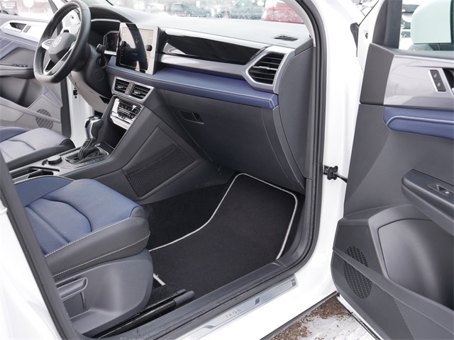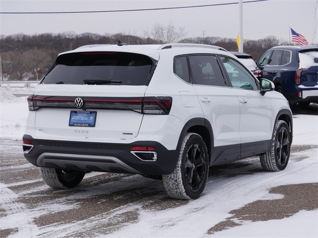 Certified. AWD, ALL WHEEL DRIVE, APPLE CAR PLAY, ANDRIOD AUTO, REARVIEW CAMERA SYSTEM, BLUETOOTH, BLIND SPOT TECHNOLOGY, HEATED SEATS, HEATED AND COOLED SEATS, HEATED STEEERING WHEEL, MOONROOF, SUNROOF, PANORAMIC MOON ROOF, PUSH BUTTON START, FORWARD COLLISION WARNING, USB PORTS, backup camera, Leather Seats, Remote Start, Sunroof/Moonroof, Premium Audio Package, AM/FM radio: SiriusXM with 360L, Black Wheel Plus Package, Exterior Parking Camera Rear, Heated & Actively Ventilated Front Bucket Seats, Heated front seats, Heated steering wheel, Navigation system: VW Car-Net Guide & Inform, Perforated Vienna Leather Seating Surfaces, Power moonroof, Radio: MIB3 Discover Media AM/FM/HD, Ventilated front seats, Wheels: 19`` Black Painted Alloy. Clean CARFAX. Pure White 2025 Volkswagen Taos 1.5T SEL AWD 1.5L I4 Turbocharged DOHC 16V LEV3-SULEV30 174hp 8-Speed Automatic with Tiptronic