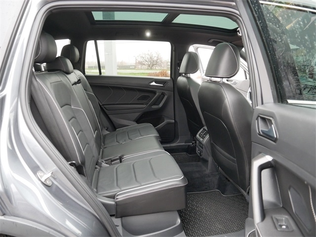AWD, ALL WHEEL DRIVE, APPLE CAR PLAY, ANDRIOD AUTO, REARVIEW CAMERA SYSTEM, BLUETOOTH, INTELLIGENT CRASH RESPONSE SYSTEM, NAVIGATION GPS, BLIND SPOT TECHNOLOGY, HEATED SEATS, HEATED AND COOLED SEATS, HEATED STEEERING WHEEL, MOONROOF, SUNROOF, PANORAMIC MOON ROOF, PUSH BUTTON START, backup camera, Remote Start, Sunroof/Moonroof, AWD, Heated front seats, Heated steering wheel, Heated/Ventilated Front Comfort Sport Seats, Leather steering wheel, Memory seat, Navigation system: VW Car-Net Guide & Inform, Perforated Vienna Leather Seating Surfaces, Power Liftgate, Power moonroof. Clean CARFAX. Platinum Gray Metallic 2022 Volkswagen Tiguan 2.0T SEL R-Line AWD 2.0L TSI DOHC 8-Speed Automatic with Tiptronic