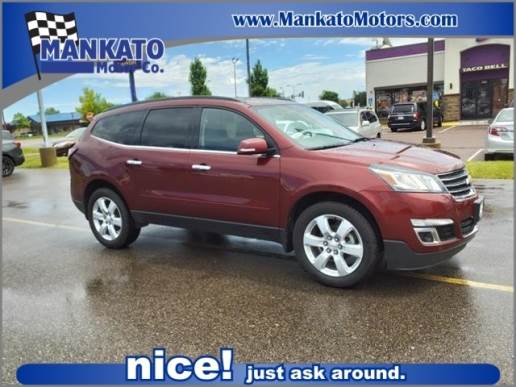 This 2017 Chevrolet Traverse LT SUV is a reliable and powerful motorcar. With a 3.6 liter 6 cylinder engine and fuel injection, it has a siren red tintcoat exterior and all wheel drive capabilities. It has an impressive fuel economy of 15 mpg in the city and 22 mpg on the highway, making it an economical choice for those looking to save on gas. It has been crash tested for safety and has received a 5 out of 5 stars rating on its crash test ratings. Additionally, this vehicle comes with hill start assist and full time four wheel drive capabilities for added safety and control. With its many features and impressive performance, this car is sure to make any driver feel safe and secure on the roads. We have been voted Mankato`s #1 place to purchase a New or Used Car since 2013. We are the most positive reviewed dealer in the area. Our mission statement is simple: To be so effective we are able to be helpful to others. Call or stop by today and see the difference. Nice! Just Ask Around.