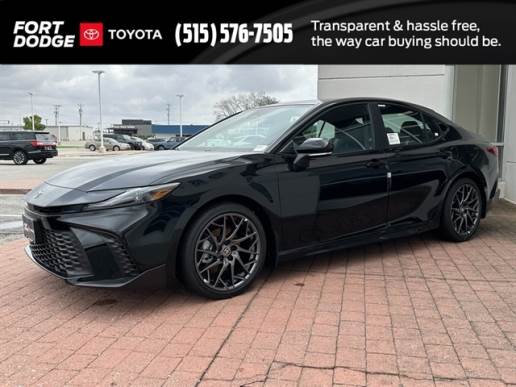 Midnight Black Metallic 2025 Toyota Camry SE FWD eCVT 2.5L 4-Cylinder 16V DOHC Convenience Package, Cold Weather Package, Multimedia Upgrade Package, Power Tilt/Slide Moonroof.