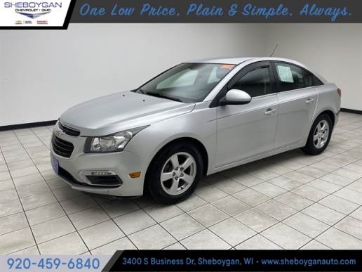 Silver Ice Metallic 2015 Chevrolet Cruze 1LT Local Trade, Backup Camera, Bluetooth, Power Drivers Seat, Cruze 1LT, 4D Sedan, ECOTEC 1.4L I4 SMPI DOHC Turbocharged VVT, 6-Speed Automatic Electronic with Overdrive, FWD, Silver Ice Metallic, Jet Black Cloth, Preferred Equipment Group 1SD. 26/38 City/Highway MPG At Sheboygan Auto, we walk it, with pride! Our Sales personnel are non-commissioned, which means we pay their wages, not you! If you are looking for a GMC, Chevrolet, or Cadillac we`re a short drive away in Sheboygan. We are located on S. Business Drive, in the South part of town in Sheboygan, Wisconsin. We have a huge selection of GM vehicles for you to choose from. Our dealership is open 6 days a week, as well as our parts and service departments. Check out our hours and directions page, then make the drive to Sheboygan Chevrolet GMC Cadillac. You`ll see why our Cadillac, Chevrolet, and GMC customers keep coming back to our dealership. Awards: * 2015 KBB.com 10 Best UberX Candidates * 2015 KBB.com 10 Best Used Compact Cars Under $10,000 Reviews: * If you need small-car pricing and fuel-efficiency but you don’t want to give up big-car comfort, check out the 5-passenger Chevrolet Cruze for 2015. Although it’s categorized as a compact sedan, the Cruze’s interior volume actually qualifies it as a midsize model. Source: KBB.com * Two satisfying high-efficiency engine choices; secure handling; handsome interior design; big trunk. Source: Edmunds