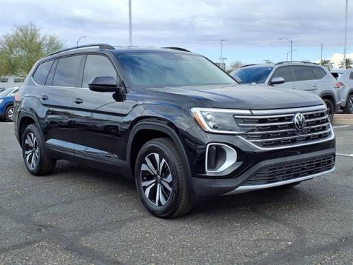 The 2026 Volkswagen Atlas SE is a powerful and reliable motorcar. It has a 2.0 liter 4 cylinder engine with turbocharging, and a FWD drivetrain that provides excellent fuel economy of 20 mpg in the city and 27 mpg on the highway. The vehicle`s striking black pearl exterior is complemented by a luxurious leather interior, and its 5 out of 5 star crash test rating ensures safety and peace of mind. The Atlas SE also features a number of modern conveniences, such as touch screen display, Bluetooth audio connection, blind spot sensor, hill start assist, and center console with faux leather trim. It also comes with Bluetooth phone connectivity and leather seats for added comfort and style. With its impressive combination of power, performance, and luxury, the 2026 Volkswagen Atlas SE is sure to be a popular choice among car buyers looking for a reliable and safe motorcar. Contact Details: Lunde`s Peoria Volkswagen, 8801 w Bell Road, Peoria, AZ, 85382, sales@peoriavw.dealerspace.com, 8663647572.